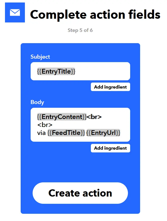 这其中用到了两个参数{{EntryTitle}}、{{EntryUrl}},通过这两个参数,IFTTT 能从 RSS 中获取到新通知的标题与链接,最终实现学校官网通知更新推送到微信。