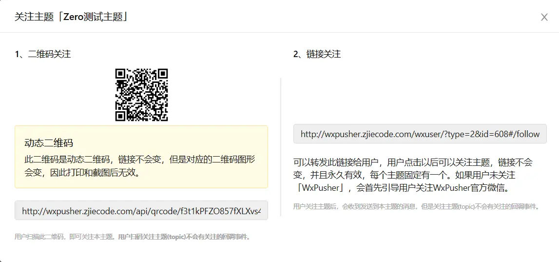 4. 点击关注,出现二维码,微信扫描二维码关注主题